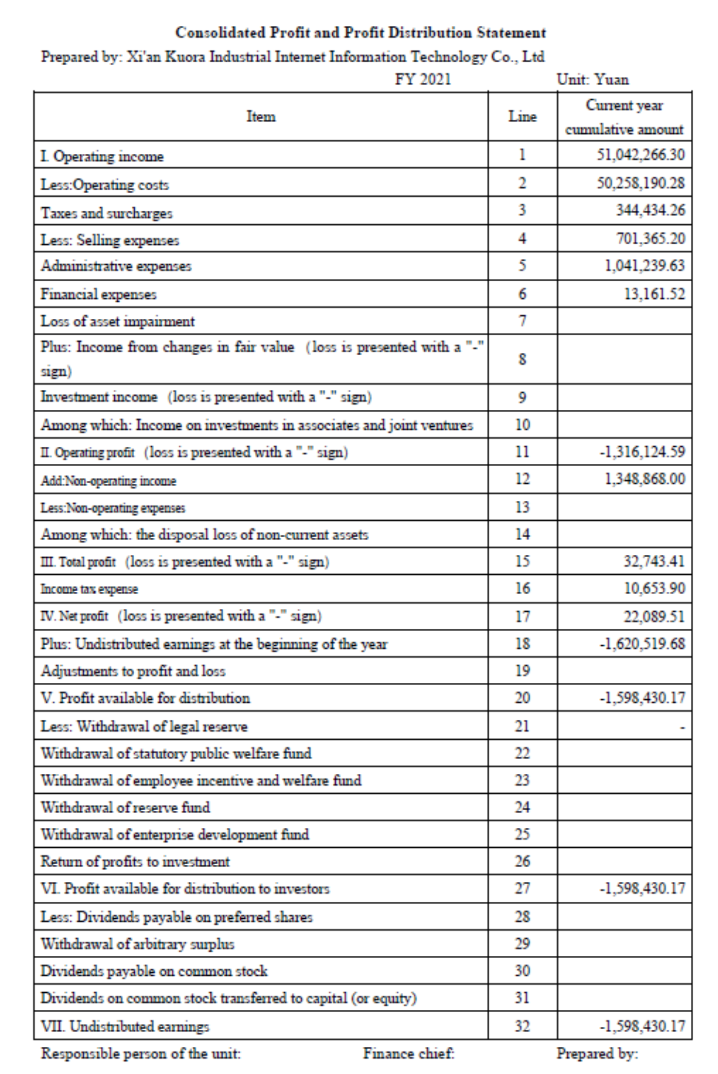 Nevertheless, we are pleased to share some snapshots of Kuora 2021 financials (China GAAP) with shareholders and investors for information purpose.