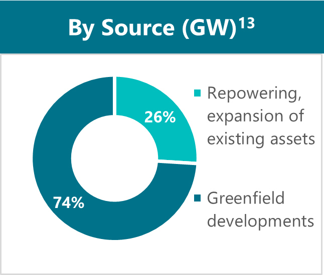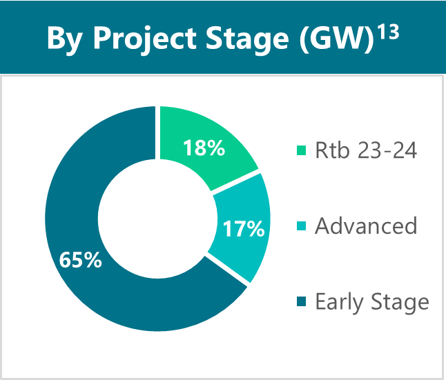 As a result of the Company’s increasing focus on growth through development and construction, we currently have a pipeline of projects under development, including both repowering and expansion opportunities of existing assets and greenfield development, of approximately 2.0 GW13 of renewable energy and 5.6 GWh13 of storage. Our pipeline consists mostly of PV, storage and wind and is mainly focused on North America. Approximately