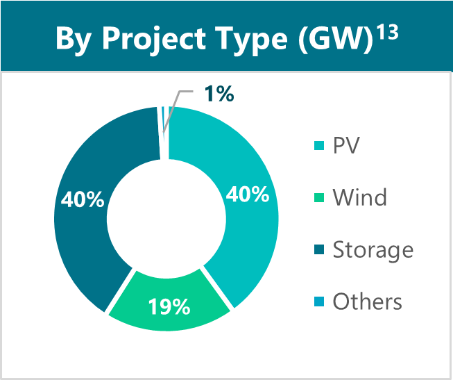 Please see "By Project Type (GW)", "By Project Stage (GW)" and "By Source (GW)" charts below.