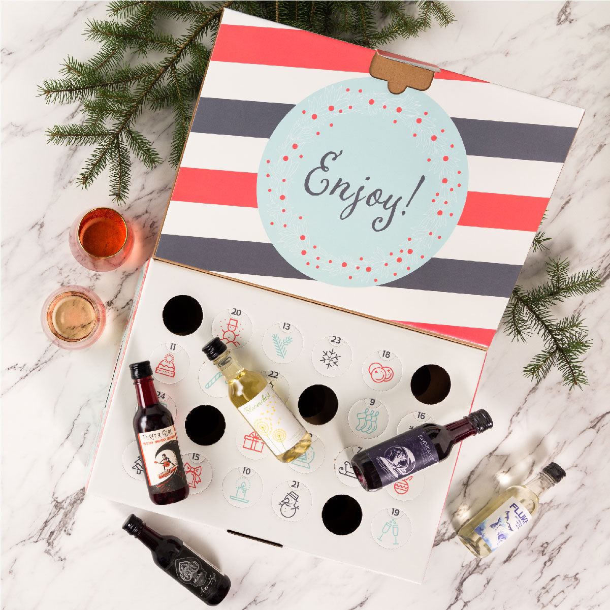 For there are 24 mini bottles of vino inside!