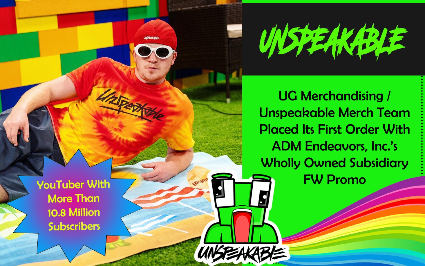 ADM Endeavors, Inc. (OTCQB: ADMQ) announces a significant milestone as UG Merchandising/Unspeakable places its inaugural order with FW Promo, a wholly owned subsidiary.