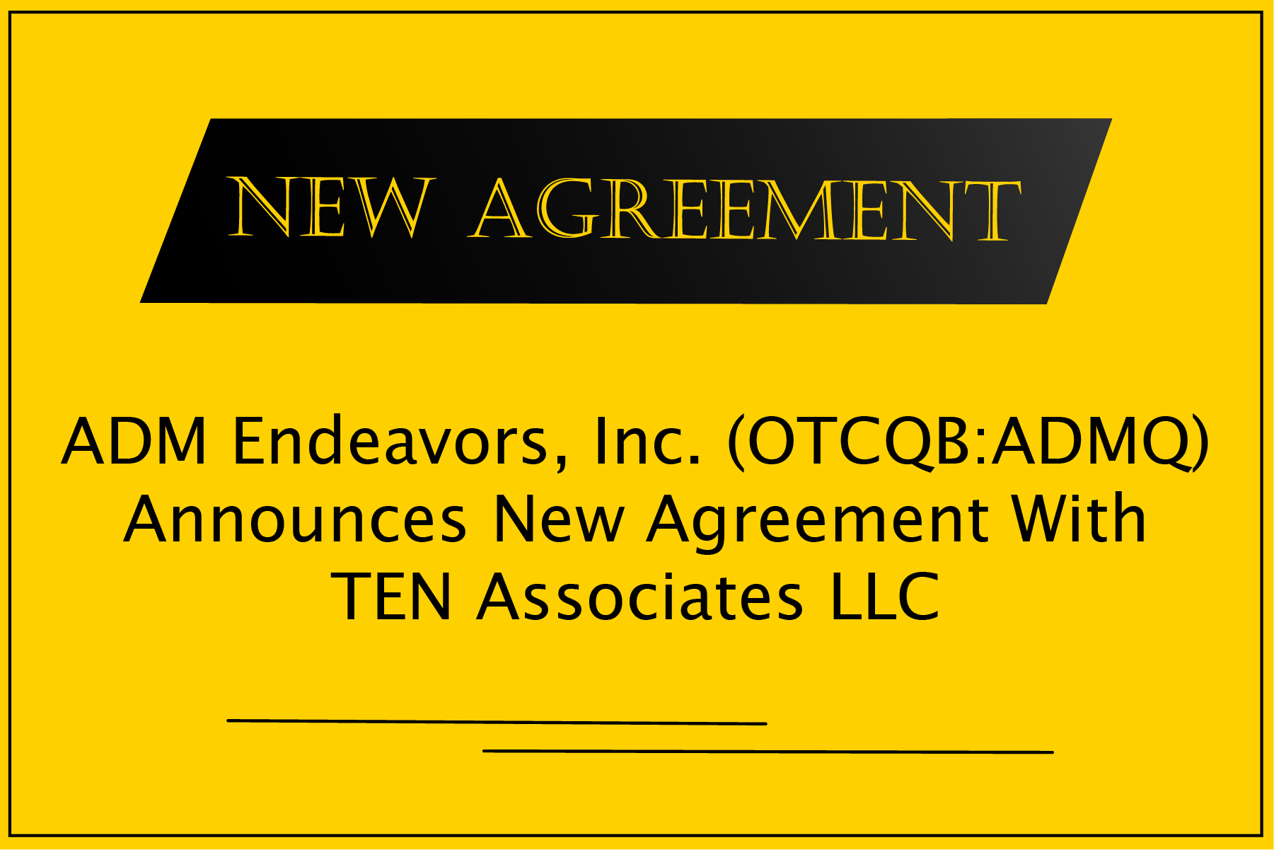 ADM Endeavors, Inc. (OTCQB: ADMQ) Announces New Agreement With TEN Associates LLC