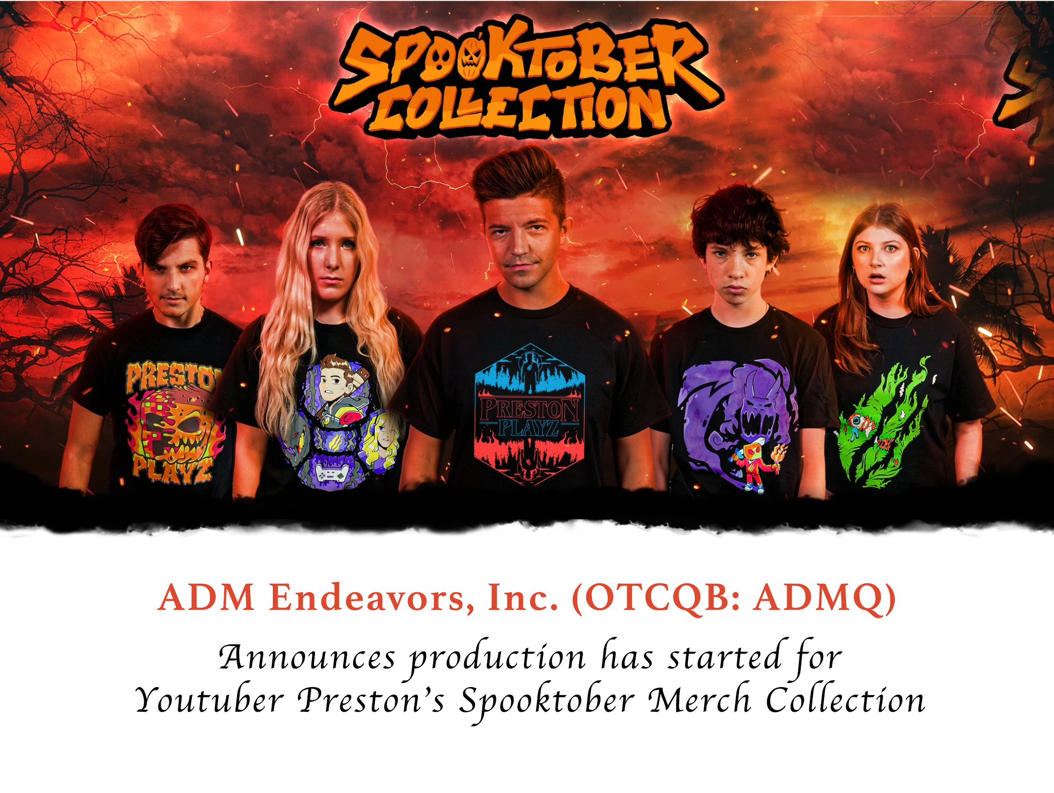 ADM Endeavors, Inc. (OTCQB: ADMQ) Announces Production has Started for Youtuber Preston's Spooktober Merch Collection