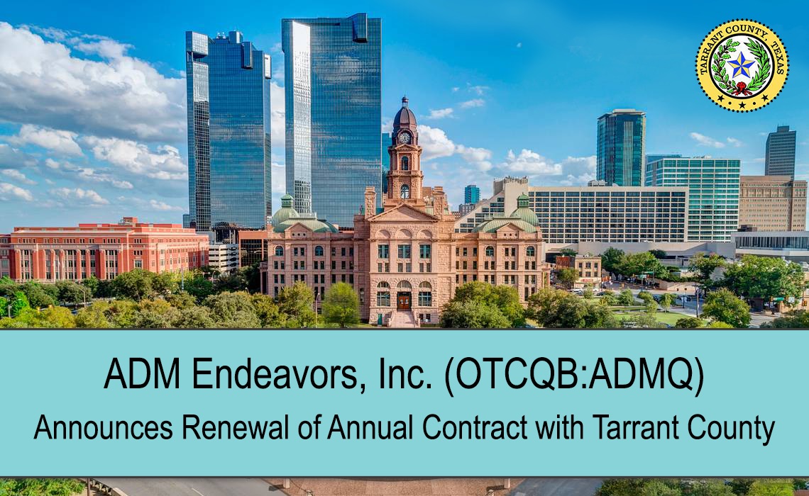 ADM Endeavors, Inc. (OTCQB: ADMQ) Announces Renewal of Annual Contract with Tarrant County; Major Texas County