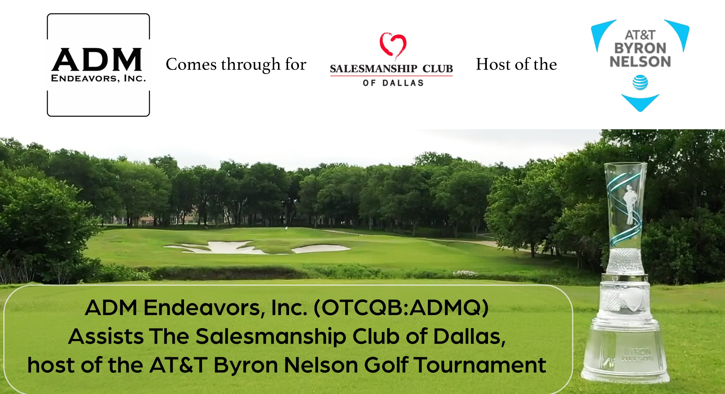 ADM Endeavors, Inc. (OTCQB: ADMQ) Assists the Salesmanship Club of Dallas, Host of the AT&T Byron Nelson Golf Tournament