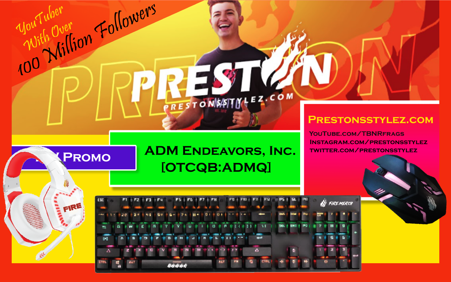 ADM Endeavors, Inc. (OTCQB:ADMQ): Gamer Preston Adds Electronics to His Fire Merch Line