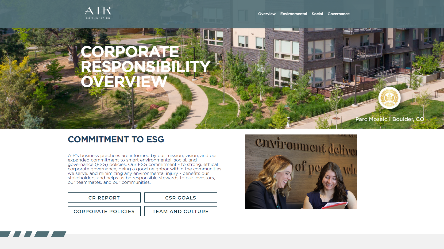 Visit AIR’s ESG website at https://csr.aircommunities.com to learn more.