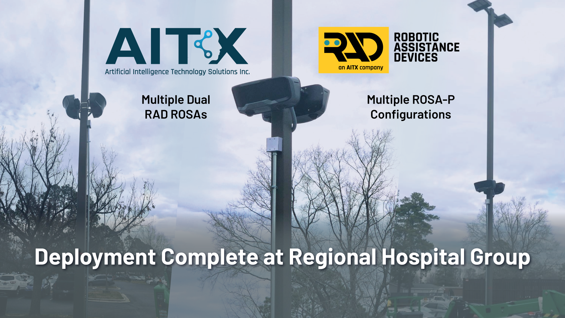 Detroit, Michigan, March 10, 2023 (GLOBE NEWSWIRE) -- Artificial Intelligence Technology Solutions, Inc., (the “Company”) (OTCPK:AITX), a global leader in AI-driven security and productivity solutions for enterprise clients along with its wholly owned subsidiary, Robotic Assistance Devices, Inc. (RAD), today announced the successful deployment of multiple ROSA security robots. The end-user for this deployment is a large regional hospital group that is part of a health group with over 600 locations. This order was facilitated through one of the Company’s largest dealers.
