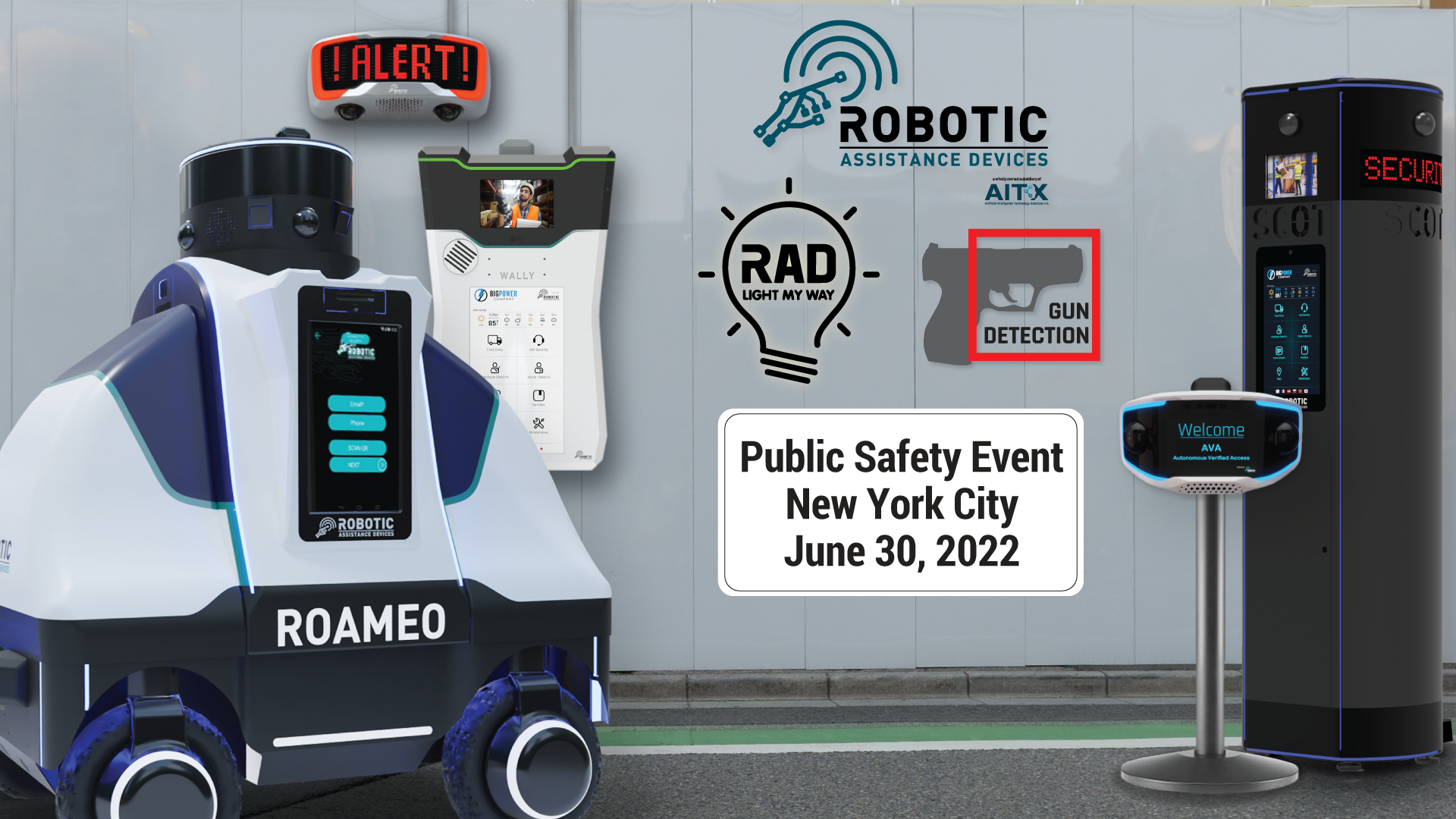 Detroit, Michigan, May 31, 2022 (GLOBE NEWSWIRE) -- Artificial Intelligence Technology Solutions, Inc., (OTCPK:AITX), today announced that its wholly owned subsidiary Robotic Assistance Devices, Inc. (RAD) will host an event focused on public safety technology in New York City, Thursday June 30 at a location in lower Manhattan and time to be determined.