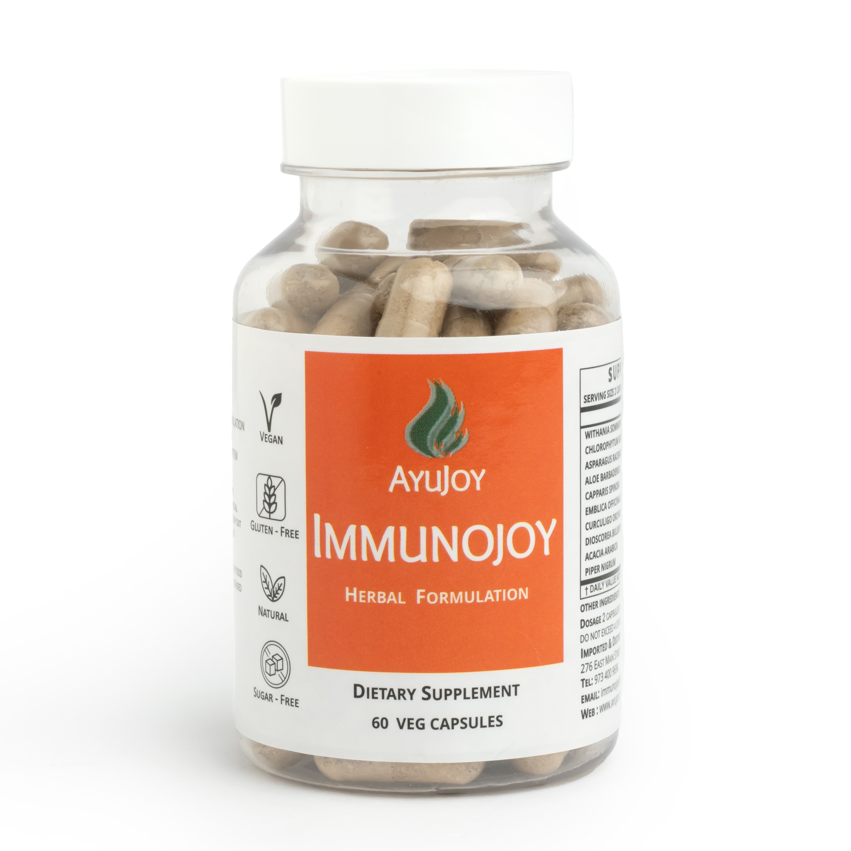 Immunojoy is a unique blend of a variety of herbs including aloe vera, piper nigrum and chlorophytum borivilianum to boost the body’s natural immunity and delivers a potent 700 mg of ashwagandha to simultaneously reduce stress and thus increase the potency of the herbs boosting natural immunity.