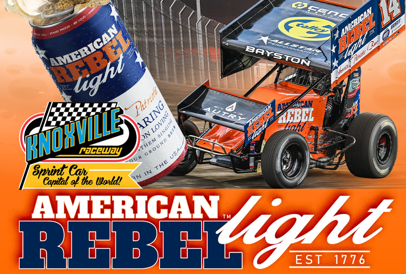 “This is what American Rebel is all about,” said Todd Porter, President of American Rebel Beverage. “We’re proud to support a talented driver - Spencer Bayson, a world-class team - Jason Meyers Racing, and a legendary racetrack - Knoxville — and thrilled to be across the street at Dingus, raising a can with the fans who make this sport great. Knoxville is Sprint Car country, and American Rebel Light belongs here.”