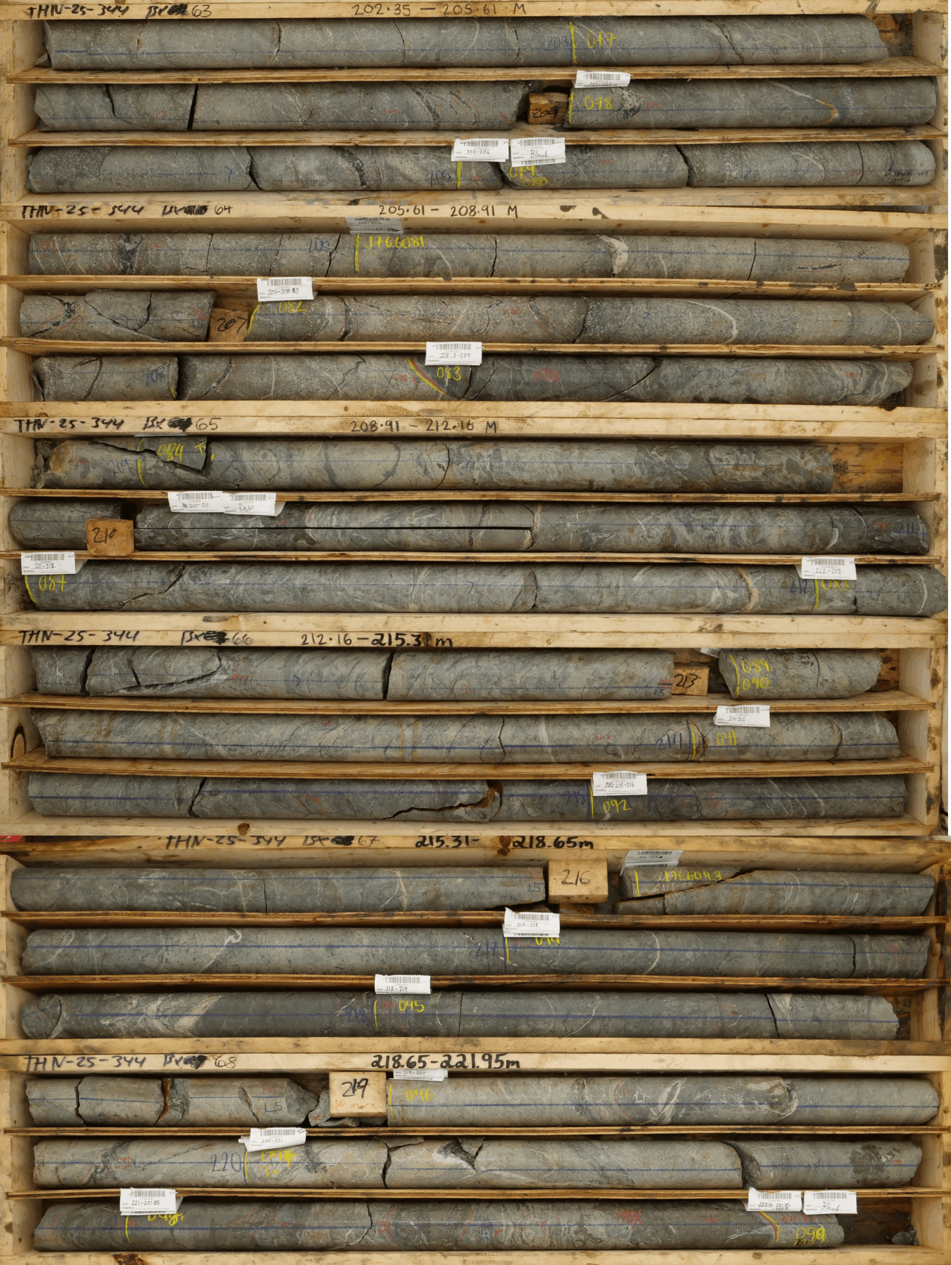 - Hole THN25-344 also returned 6.35m of 1.81 g/t gold from 281.65m depth