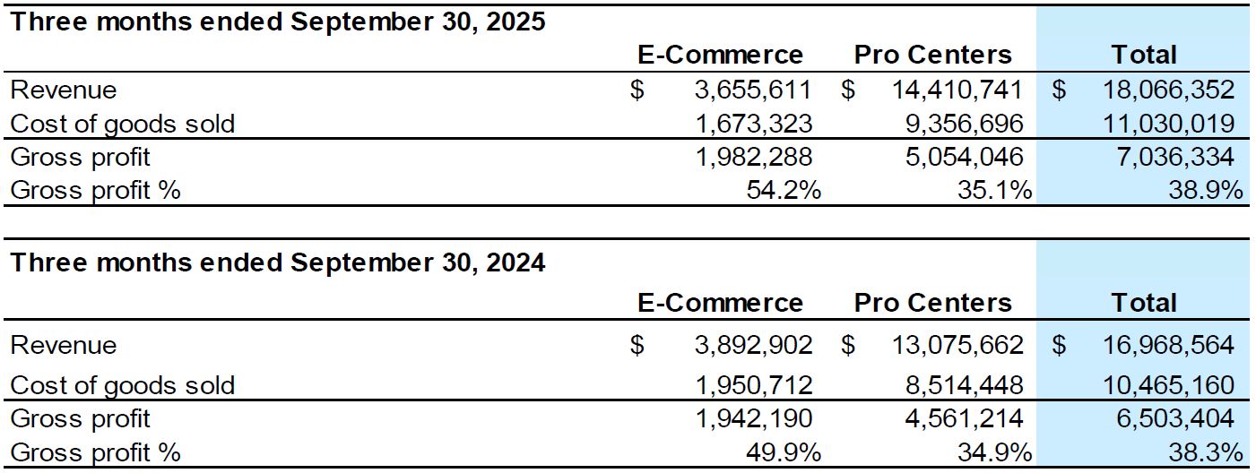 The Company reports results in two segments: (1) E-Commerce and (2) Pro Centers. We measure each reportable operating segment's performance based on revenue. The E-Commerce segment relates to our online platform while the Pro Center segment includes sales and installation revenue from brick and mortar locations.