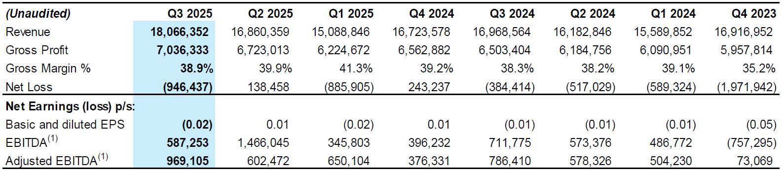 - Adjusted EBITDA of $0.97M in Q3 2025 (+23.2% YoY, 15 consecutive positive quarters)