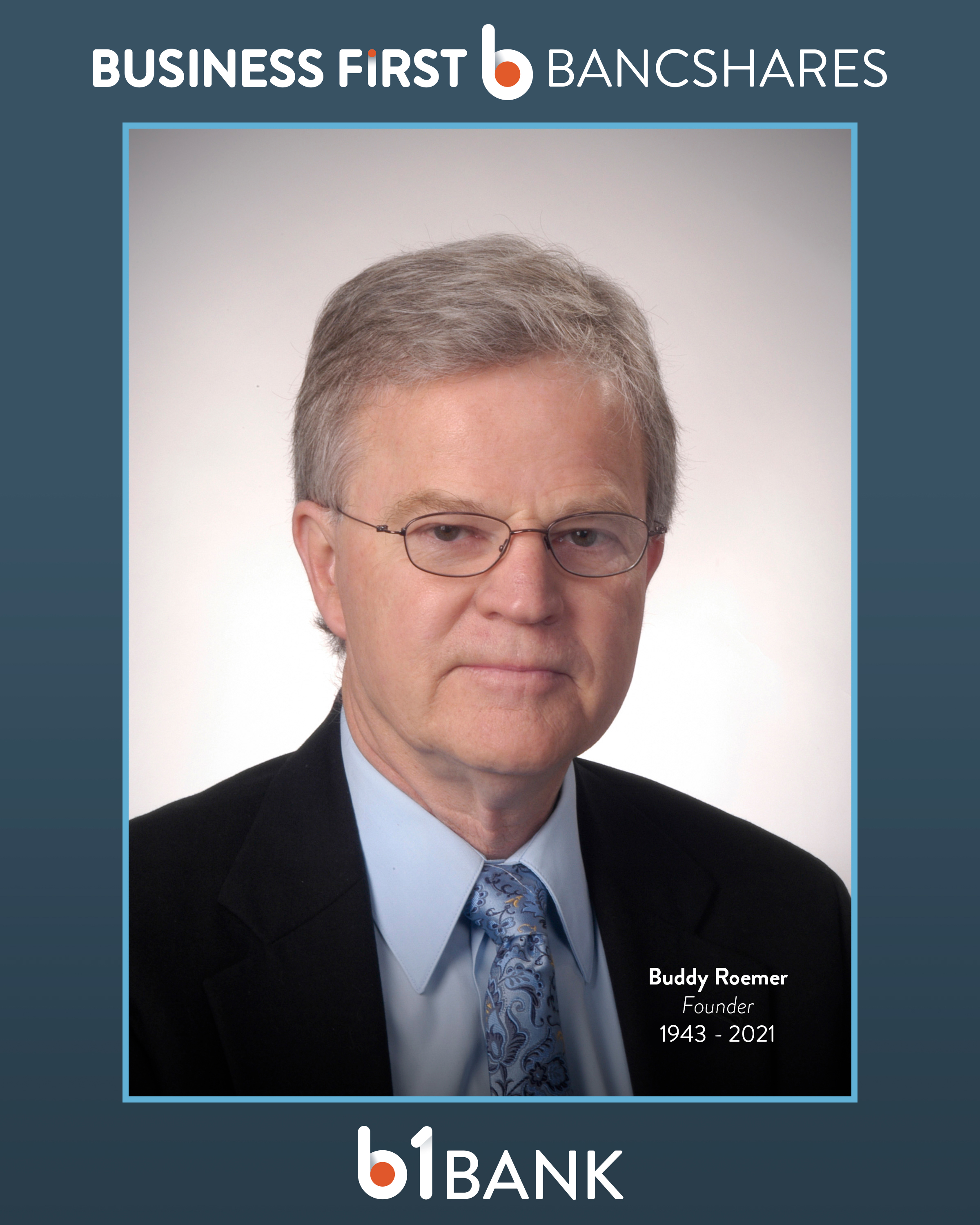 BATON ROUGE, La., May 17, 2021 (GLOBE NEWSWIRE) -- Business First Bancshares, Inc. (NASDAQ: BFST) (Business First), parent company of b1BANK, Baton Rouge, Louisiana, announces the following statement is from the Roemer family regarding the death of former governor and congressman Charles Elson “Buddy” Roemer III. He was 77.