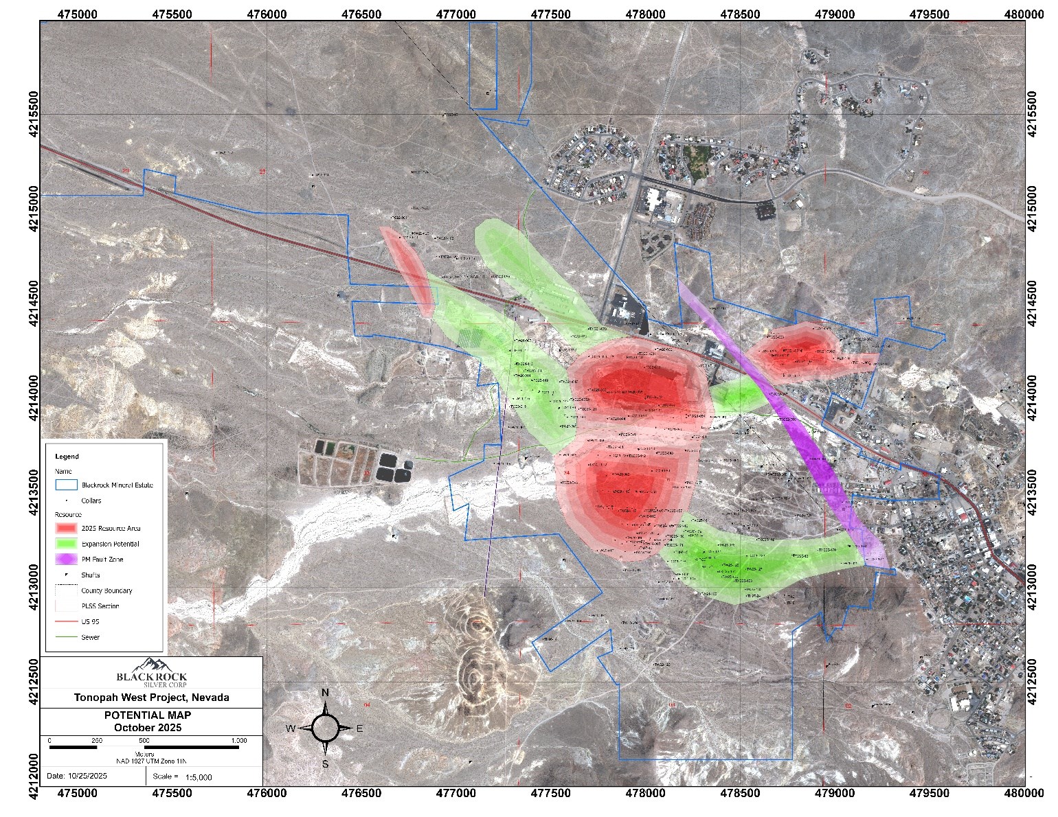 - Results from the Company's drill program targeting expansion potential across a one kilometre trend of vein corridor between the DPB and Northwest Step Out resource areas (the "Northwest Expansion Program") and the Eastern Expansion Program will be incorporated into an updated mineral resource estimate and preliminary economic assessment on Tonopah West estimated to be completed in February 2026.