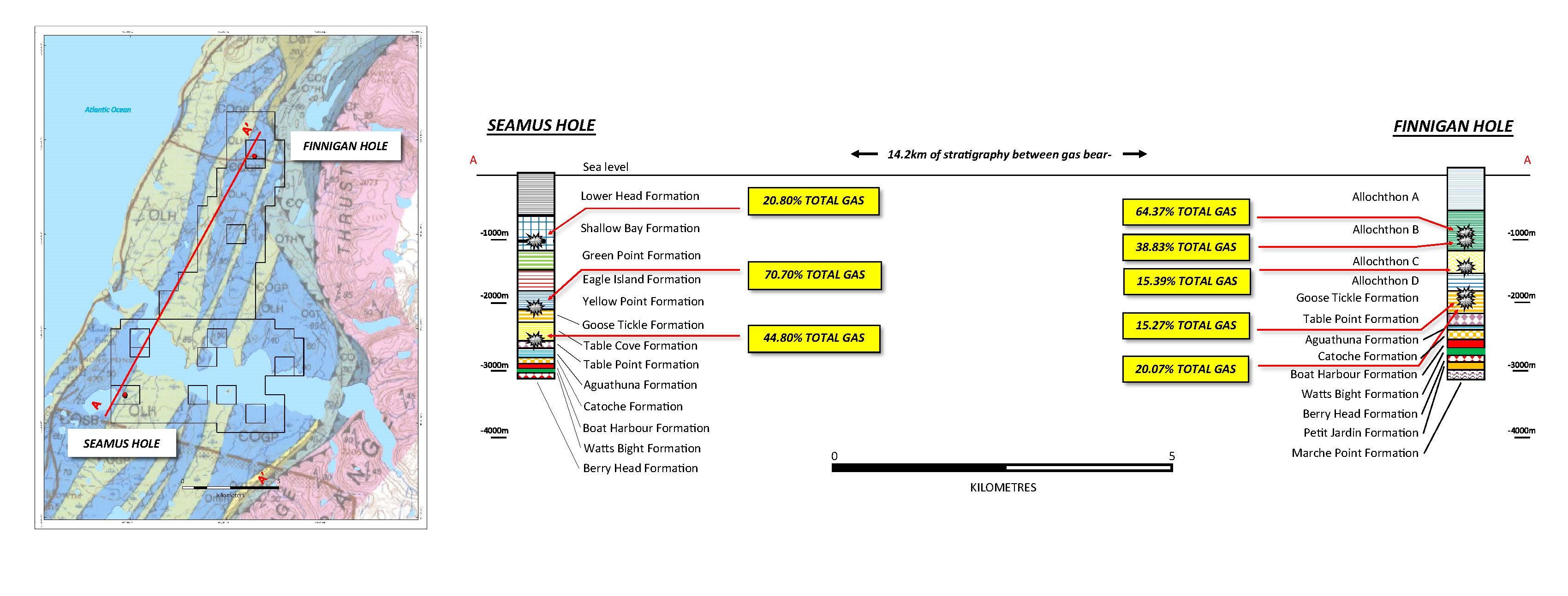 (Ref NALCOR ENERGY - OIL AND GAS INC FINAL HOLE REPORT For Nalcor Energy et al SEAMUS #1 https://www.gov.nl.ca/em/files/publications-energy-nalcorseamusfwr.pdf and NALCOR ENERGY - OIL AND GAS INC FINAL HOLE REPORT For Nalcor Energy et al Finnegan #1 https://www.gov.nl.ca/em/files/FinniganFWR.pdf).
