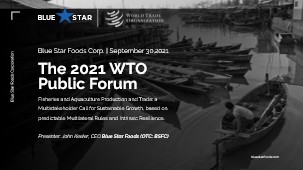 MIAMI, Oct. 28, 2021 (GLOBE NEWSWIRE) -- Blue Star Foods Corp., (OTC: BSFC) (“Blue Star” or “BSFC”), an integrated Environmental, Social, and Governance (ESG) seafood company, CEO, John Keeler, participated in a forum hosted by The Food and Agriculture Organization (FAO), a specialized agency of the United Nations that leads international efforts to defeat hunger. In the public forum, Mr. Keeler discussed the critical role land-based aquaculture systems can have in building a sustainable, resilient supply chain in the fishing industry.