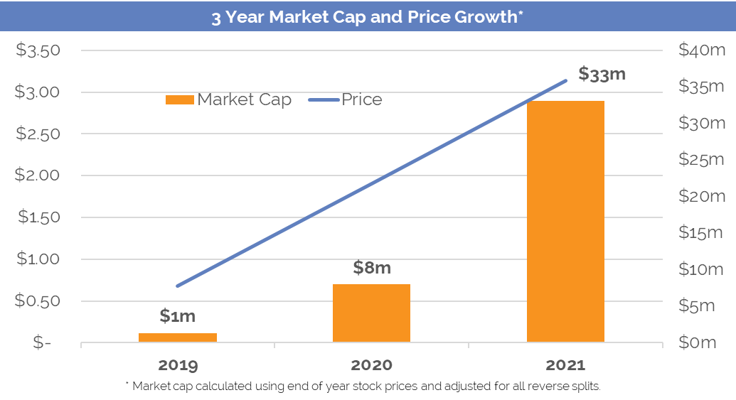 Meanwhile, despite a recent pull-back in line with the broader cryptocurrency market, BTCS’ stock price and market capitalization since 2019 have appreciated significantly as the value of the Company’s digital assets and cash has rapidly increased, as shown in the charts below.