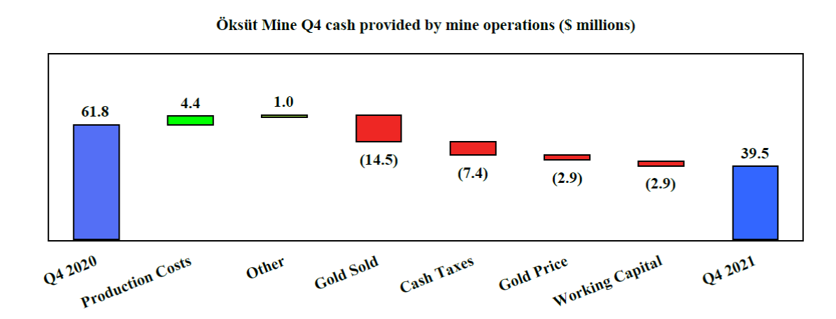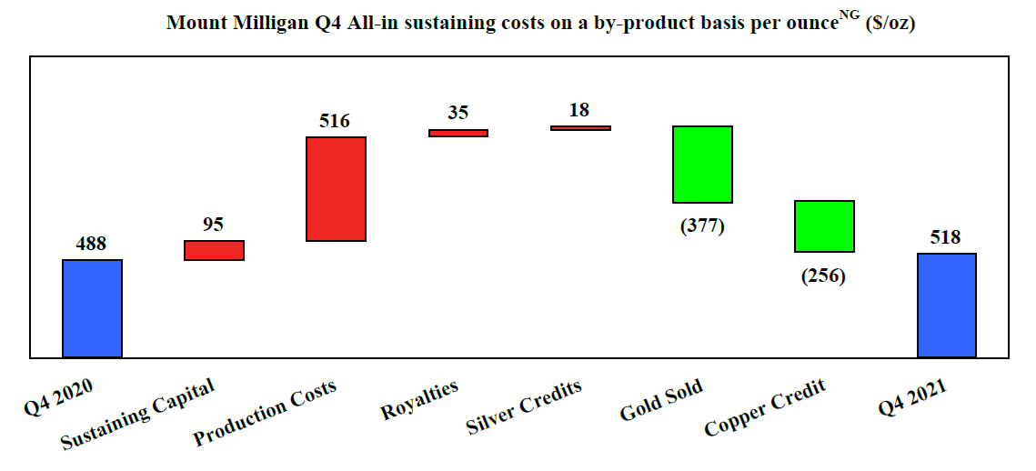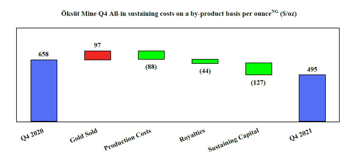 “In 2022, we expect to see continued strong operational performance at the Mount Milligan and Öksüt Mines, with a significant increase in gold production and cash generation. We anticipate consolidated gold production in 2022 to range from 400,000 to 450,000 ounces compared to 308,141 ounces of gold production in 2021. We expect to achieve this higher production level, while maintaining our low cost model with 2022 gold production costs and all-in sustaining costs on a by-product basisNG expected to be