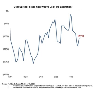 - Negative deal spread persisted after CoreWeave lockup expiry, leaving shareholders tethered to underperforming stock