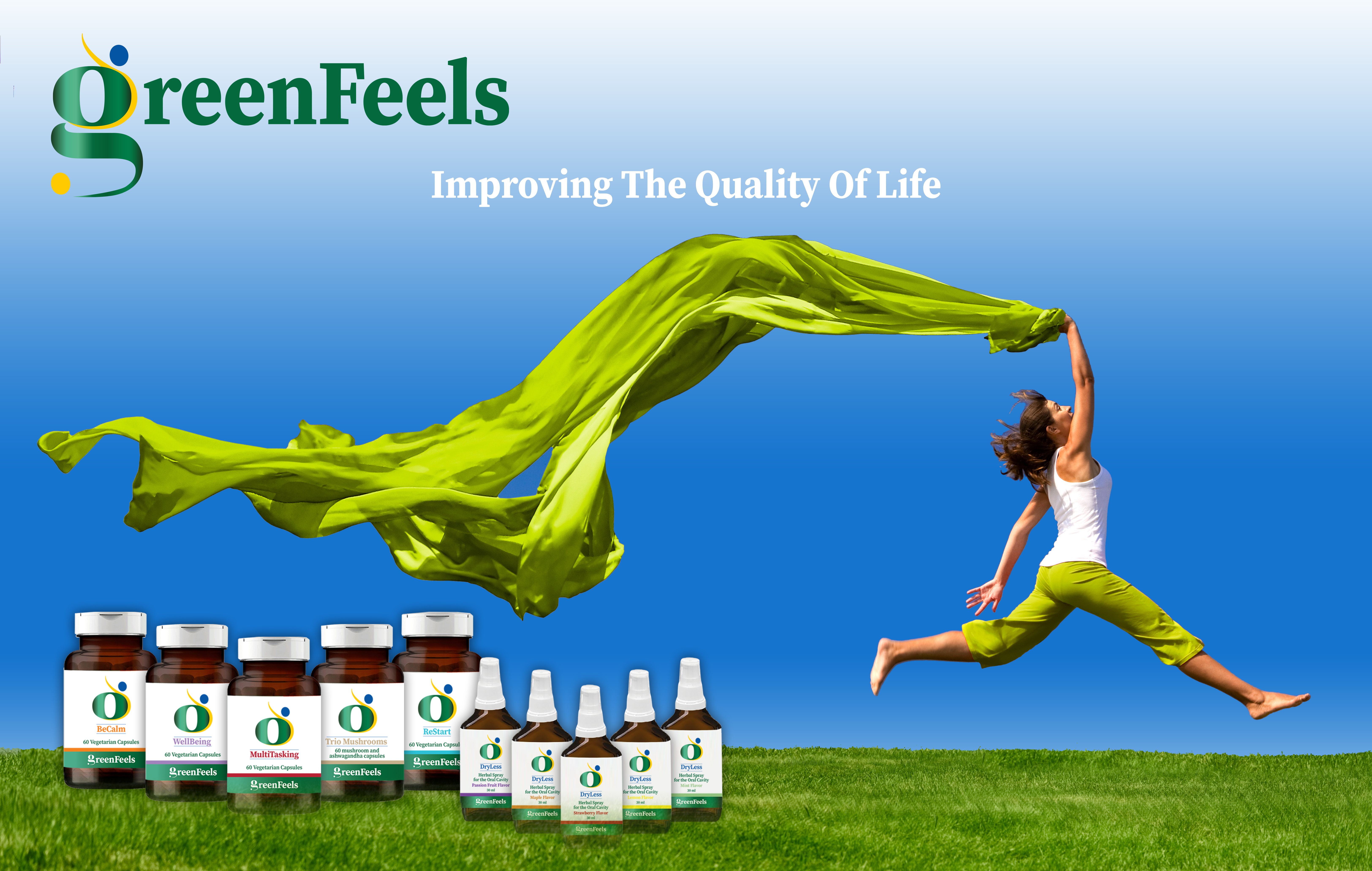 The GreenFeelsTM product lines come in multiple form factors that include herbals, medicinal mushrooms, vitamins, minerals, and a variety of researched plants known for their healing qualities that contain substances with different anti-inflammatory properties and a variety of health-supportive effects that are relaxing, sleep enhancing, energizing, mood, and body balancing, enhancing oral care, alleviating side effects, and more.