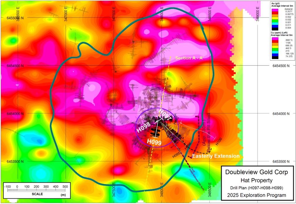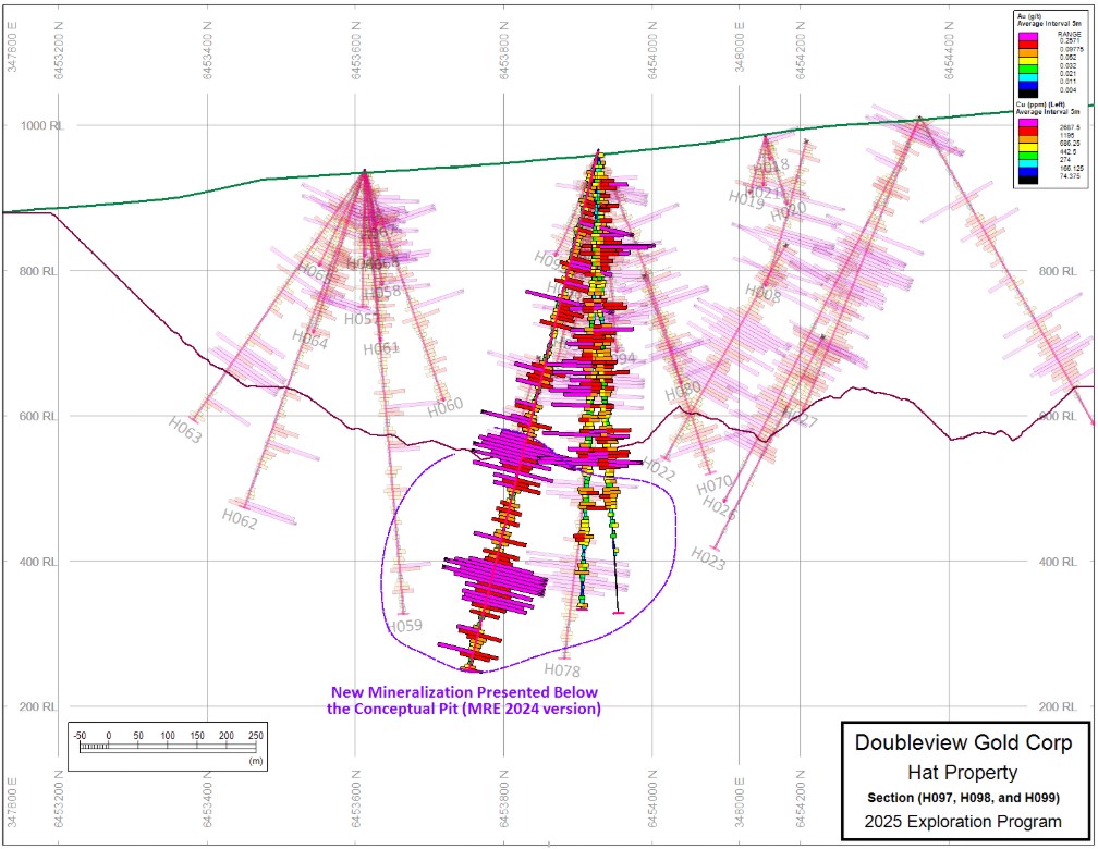 Doubleview Extends High-Grade Domains at Hat: H099 Returns 438m of 0.40% CuEq Including 52m of 1.02% CuEq, Expanding Mineralization Envelope Around Conceptual Pit Vertically and Laterally