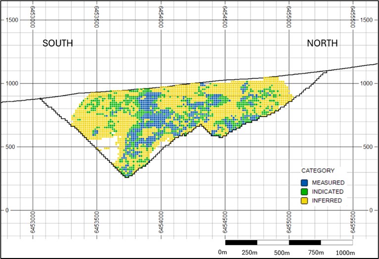- The Mineral Resource results are presented in situ within the optimized pit. Mineralized material outside the pit has not been considered as a part of the current MRE tabulation. Calculations used metric units (metres, tonnes, g/t).