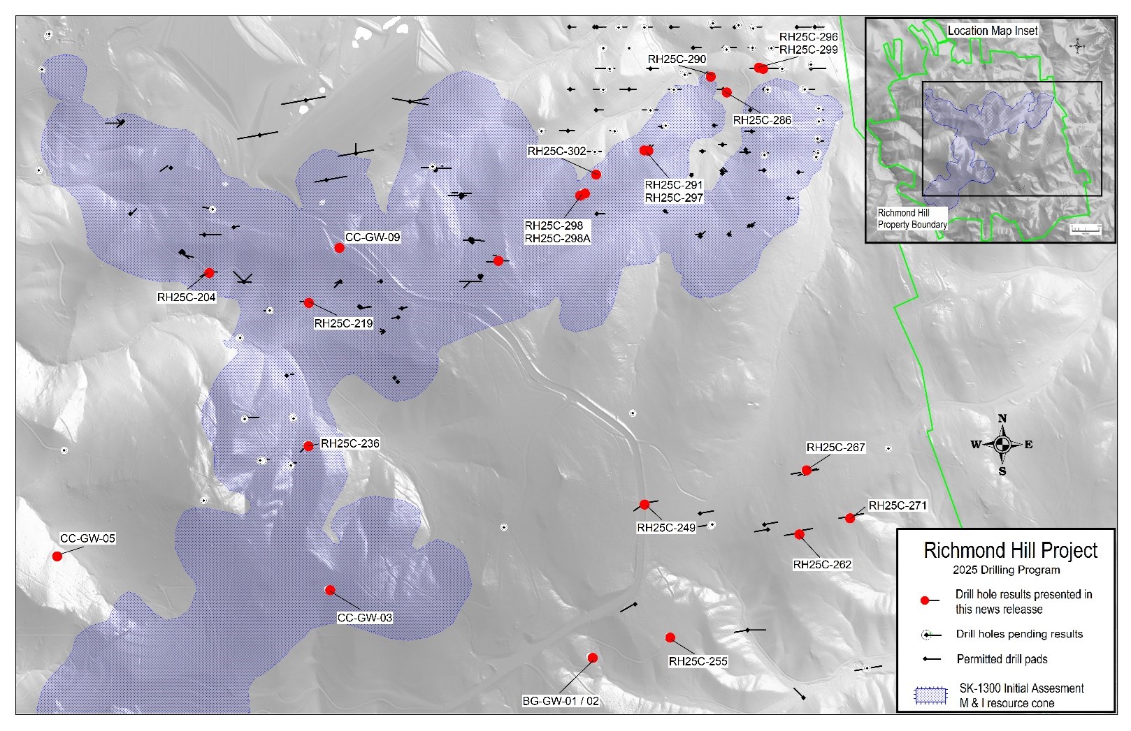 - The following condemnation holes drilled at the location of the planned heap leach pad 1 have confirmed no significant gold mineralization: RH25C-249; RH25C-255; RH25C-260; RH25C-262; RH25C-267; RH25C-271