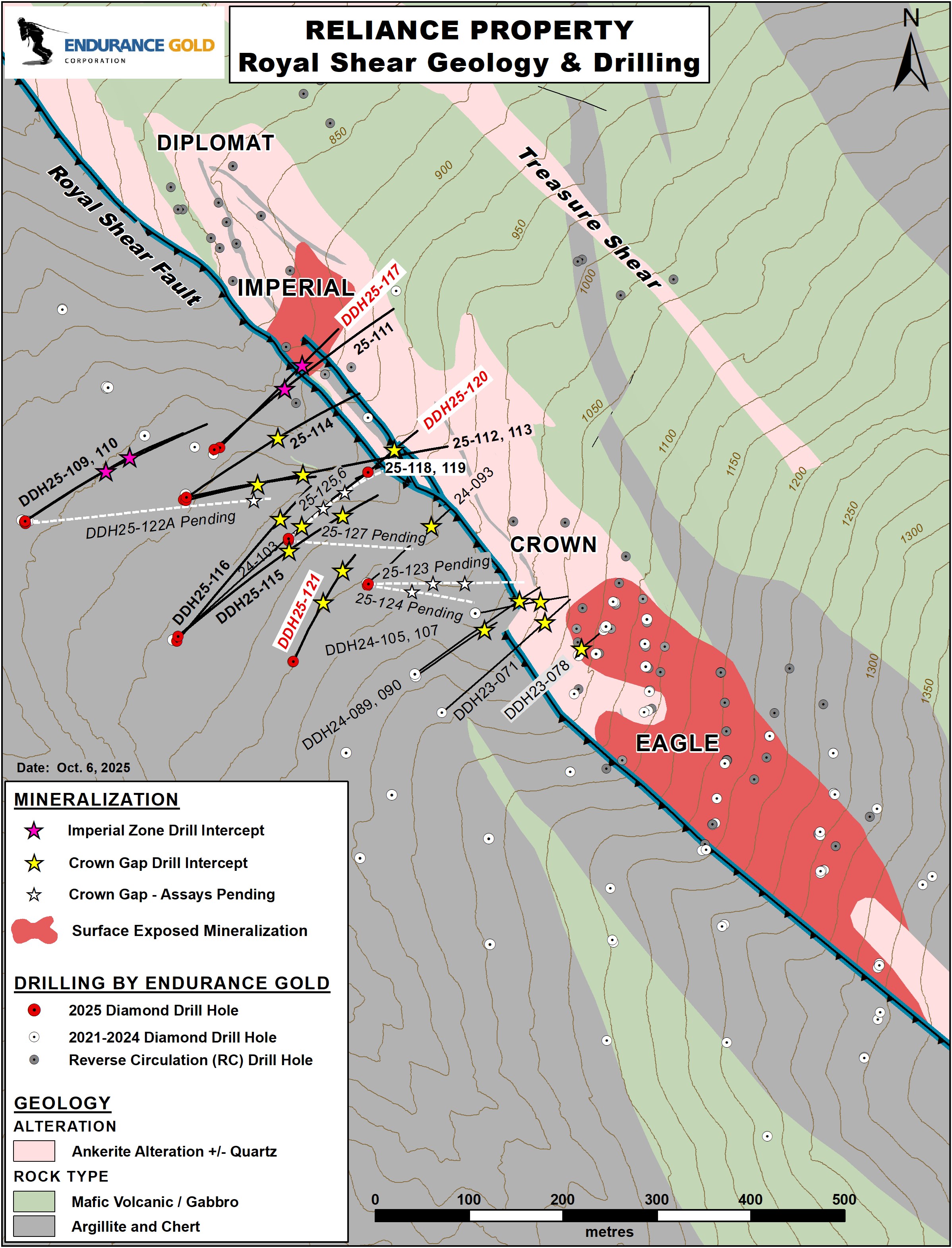 Vancouver, British Columbia--(Newsfile Corp. - October 6, 2025) - Endurance Gold Corporation (TSXV: EDG) (OTCQB: ENDGF) (FSE: 3EG) (the "Company") is pleased to announce assay results from three (3) additional drill holes from the Crown "Gap" Zone and one hole from the Imperial Zone at its