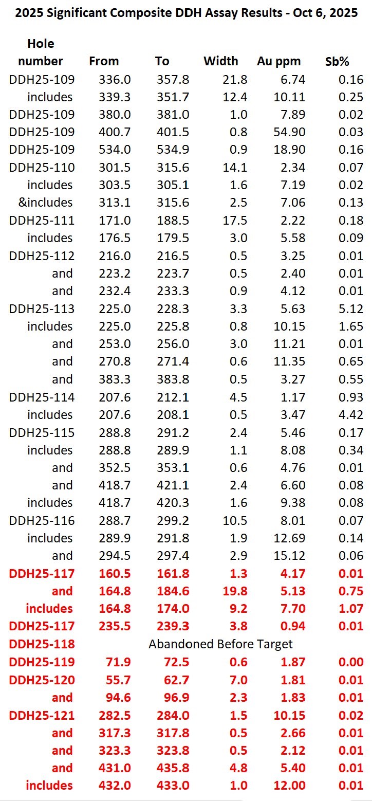 - Drill hole DDH25-117 returned 5.13 grams per tonne ("gpt") gold &