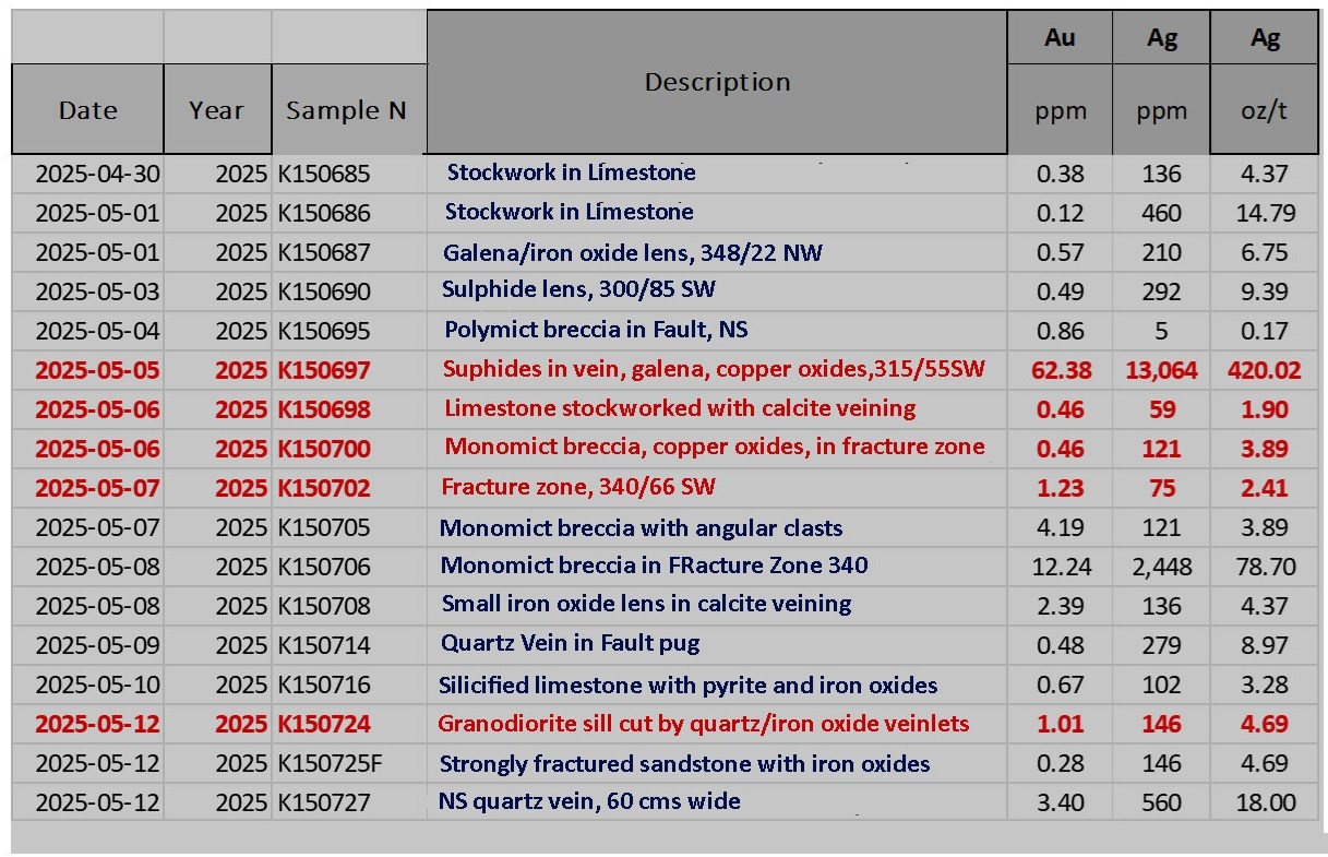 Table 1: Summary of 2025 Excellon Surface Sampling at Shafra