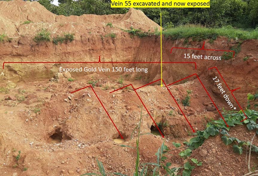 In preparation for an upcoming drill and open pit bulk testing program scheduled to begin in October 2021, the Company collected six samples on the Kukuom property from the hard rock vein, surrounding open pit wall, and two historic alluvial tailing piles found onsite (see Figure 1).