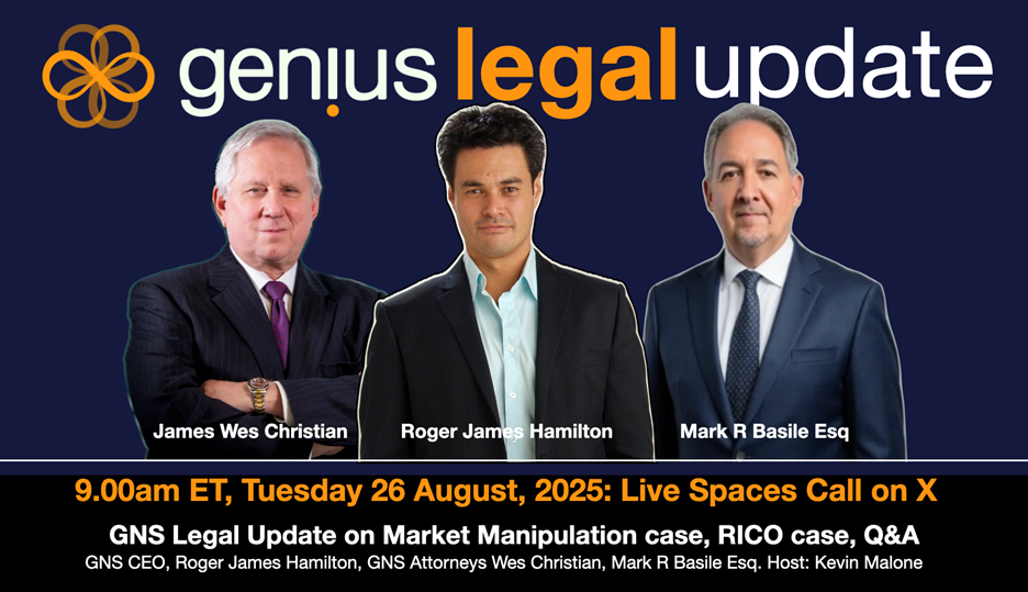Genius Group’s CEO, Roger James Hamilton said “Given the various positive developments the Company is seeing across its multiple, interrelated lawsuits, we have decided to host the X Spaces legal update to give our investors and stakeholders an overview of the status of the cases and to take questions.”