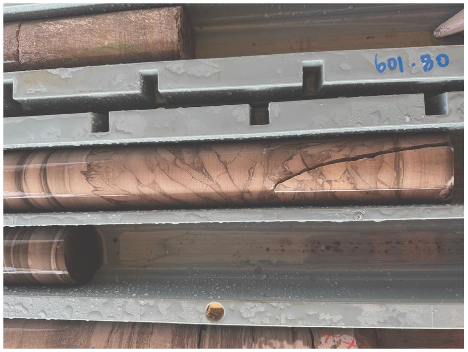 Figure 5 - Imbricated 'mass flow' breccia: ~601m hole WGD25003
