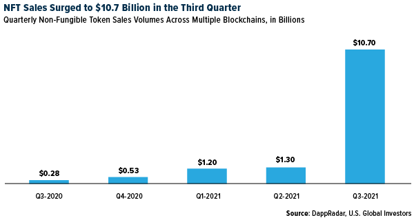 - NFT market showed significant growth, with Q3 2021 sales reaching $10.7 billion.