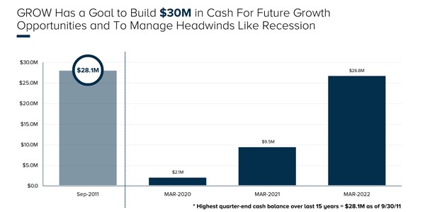 In the first quarter of 2022, GROW stock performed well, rising more than