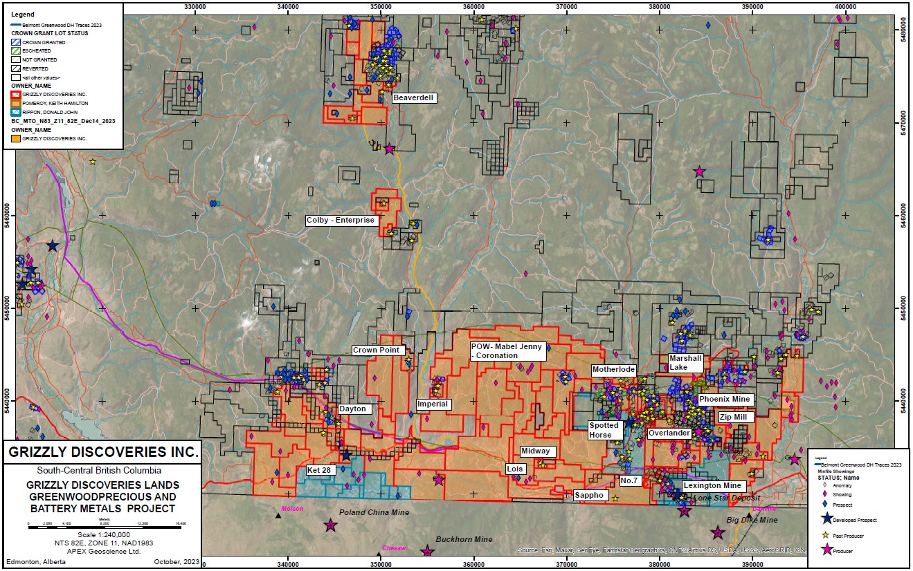 Brian Testo, President and CEO of Grizzly Discoveries stated, "We are excited and are looking forward to pursuing a number of high grade gold – silver – copper – lead -zinc showings and historical mines with drilling in the fall of 2025 along with additional exploration for significant battery metal prospects in our current 165,000+ acre land holdings in the Greenwood District. We have barely scratched the surface in terms of exploration!"