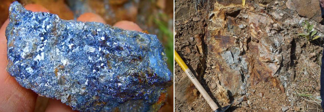 - All highly anomalous samples are from outcrop and characterized by the presence of abundant pyrite, arsenopyrite with visible galena and sphalerite in a siliceous chalcedonic host. The mineralization is hosted in polymetallic veins that display the presence of Pb, Zn, Cu, arsenic (As) and antimony (Sb) and are likely epithermal in nature (Figure 3).