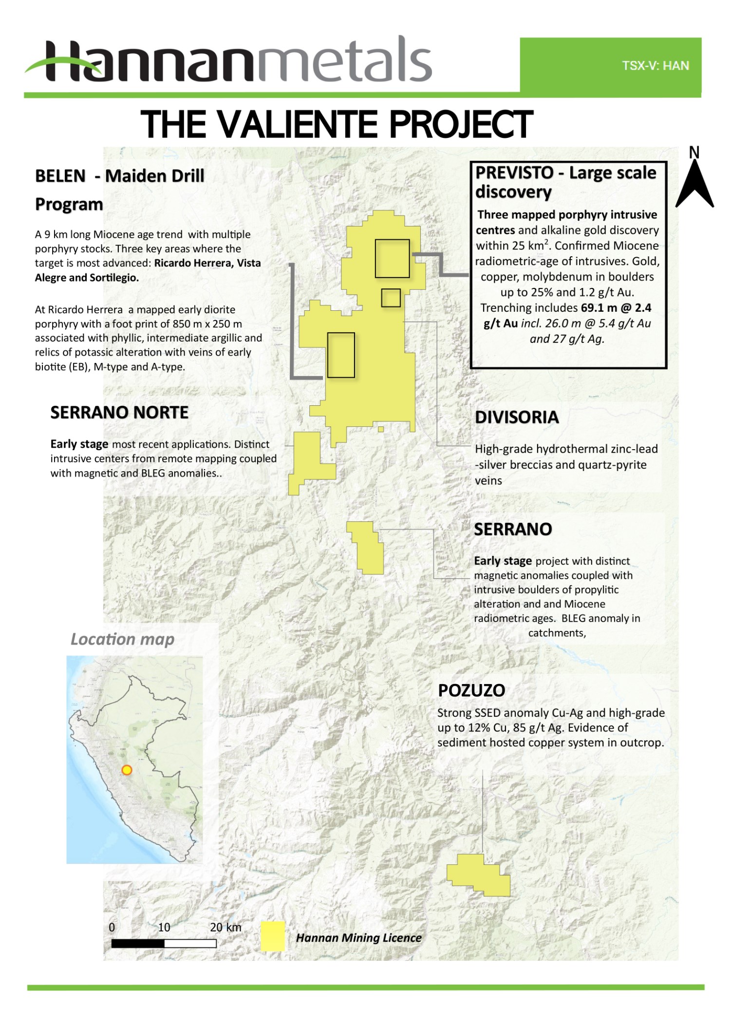 Hannan Metals Limited is an exploration company focused on the identification and delineation of large gold and copper mineralizing systems in new frontiers in Peru. Over the last decade, the team behind Hannan has forged a long and successful record of discovering, financing, and advancing mineral projects in Australia, Europe and South America.
