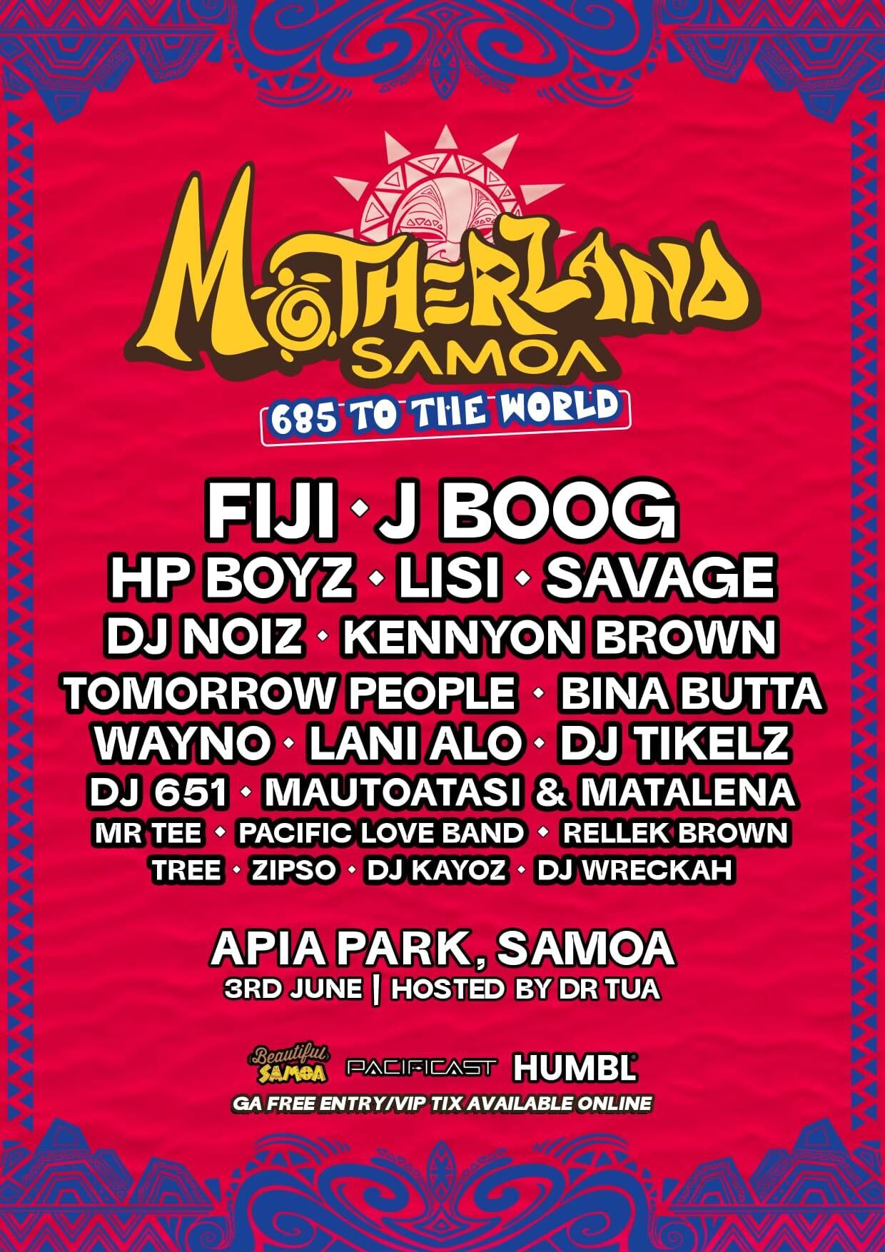 A fantastic lineup of global Pacific Island musical artists are heading back to Samoa in honor of the country’s independence day celebrations. The list of 21 musicians and bands includes award winning artists Fiji, J Boog, HP Boyz, Lisi, Savage, Tomorrow People, Bina Butta, DJ Noiz, Kennyon Brown, Wayno, Lani Alo, DJ Tikelz, DJ 651, Mautoatasi & Matalena, Mr Tee, Zipso, Pacific Love Band, and more.
