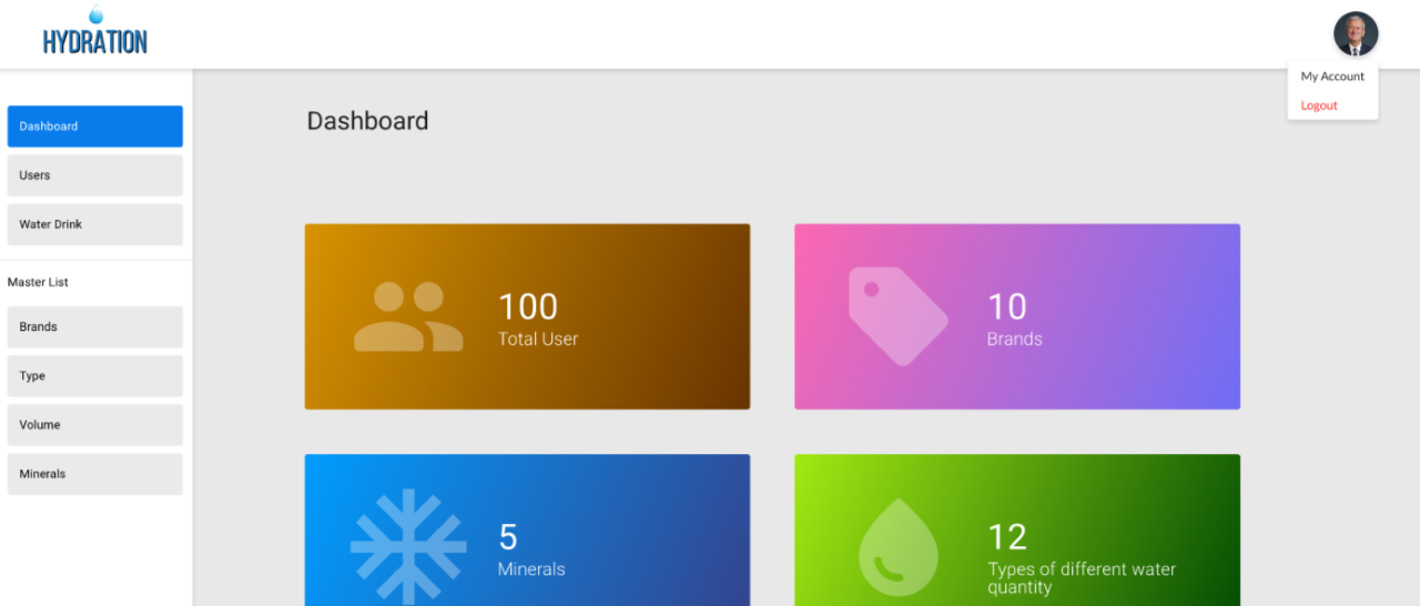 The hydration app will allow users to scan and automatically track daily water intake and compare intake to recommended daily needs by personalizing consumer recommendations based on height, weight, and activity level. The user will then view and manage their information via a dashboard available via webpage or mobile device.