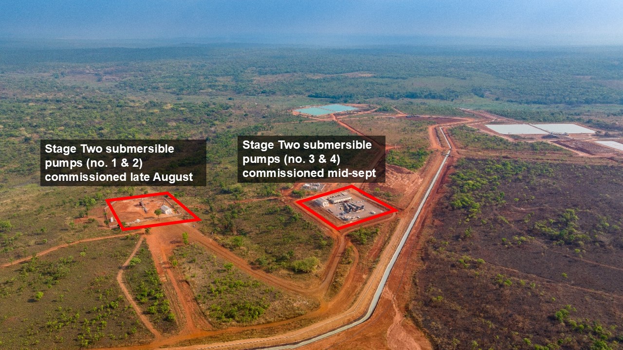 The two sites where the Stage Two dewatering infrastructure is located. Both sites were established, with all pumping infrastructure installed and commissioned within just 6 weeks.