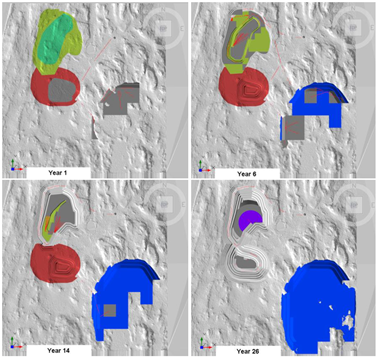 Figure 2 – Open pit and waste rock facility through the different stages