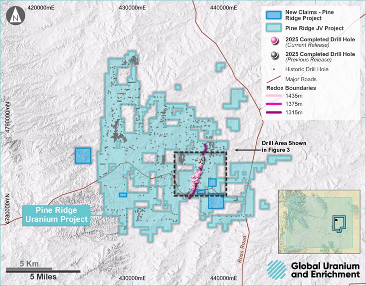 Winnipeg, Manitoba--(Newsfile Corp. - October 2, 2025) - Snow Lake Resources Ltd., d/b/a Snow Lake Energy (NASDAQ: LITM) ("Snow Lake"), a uranium exploration and development company, announces that an additional 15 drill holes have been completed on the Pine Ridge Uranium Project ("Pine Ridge"), located in the prolific Powder River Basin in Wyoming, a 50/50 joint venture (the "Joint Venture") with Global Uranium and Enrichment Limited ("GUE"), delivering encouraging intercepts including 1.8m at 550ppm U3O8 and 1.7m at 520ppm U3O8.