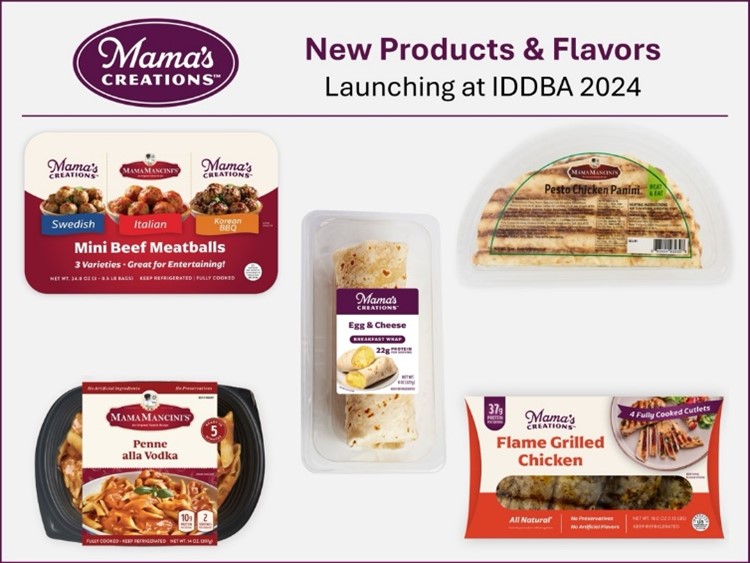 Mama's Creations (NASDAQ: MAMA) announced the launch of new products and flavors at the IDDBA 2024 event, scheduled for June 9-11 in Houston, Texas. Attendees will see the introduction of their heat & eat Breakfast Wraps in three varieties, vacuum-packed Grilled Chicken Breasts, Mini Meatball Entertaining Trios, and new Gourmet Paninis.