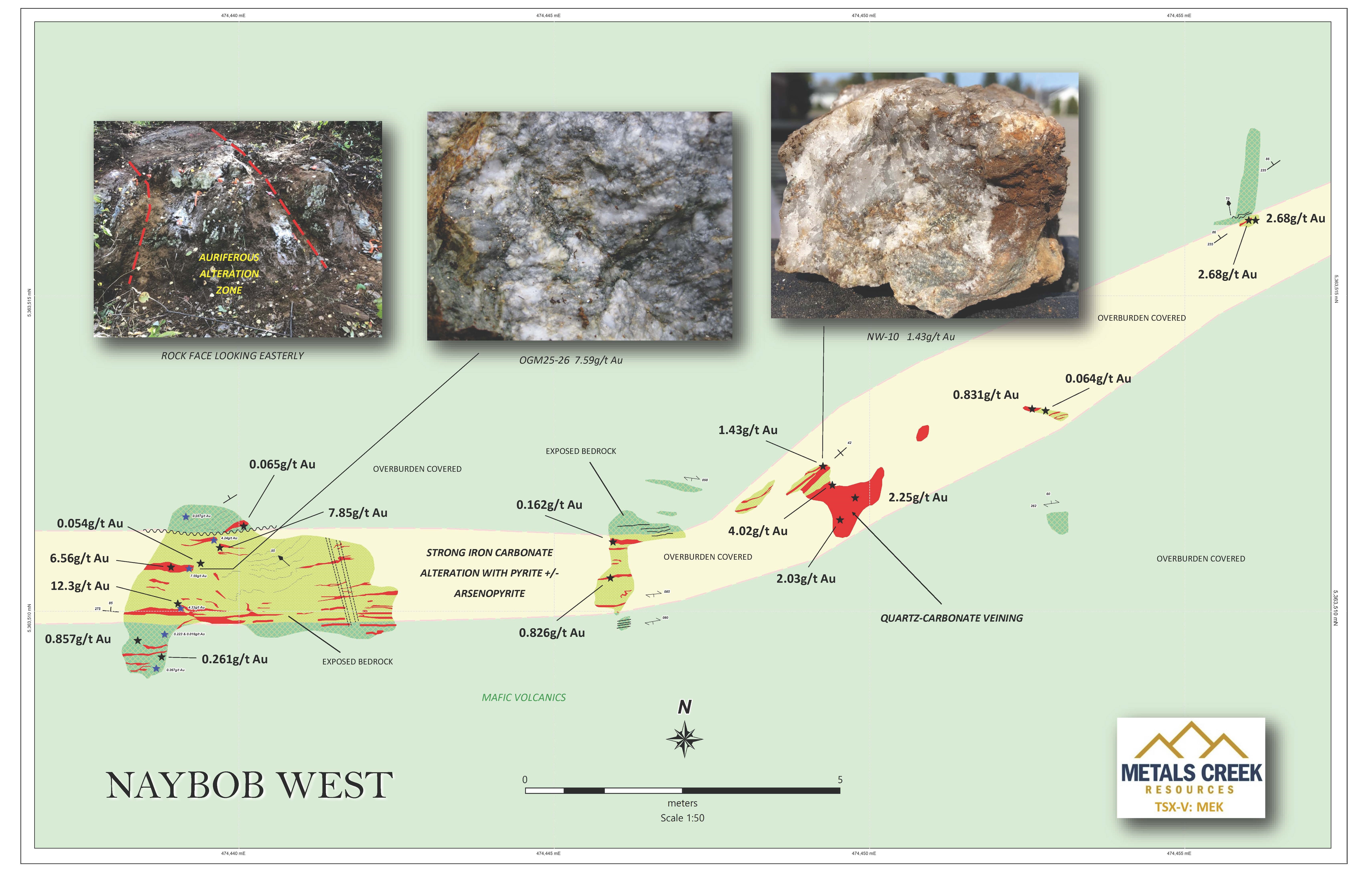 Thunder Bay, Ontario--(Newsfile Corp. - October 28, 2025) - Metals Creek Resources Corp. (TSXV: MEK) (OTCQB: MCREF) (FSE: M1C1) (the "Company" or Metals Creek) is pleased to announce additional high grade assay results from a second phase of prospecting / mapping from the Naybob West Zone which is located 400m west-northwest of the past producing Naybob Gold Deposit on the Ogden Gold Project in Timmins, Ontario. The Ogden Gold Project is a 50/50 Joint Venture with Discovery Silver Corp ("Discovery"), with the Company serving as the operator.