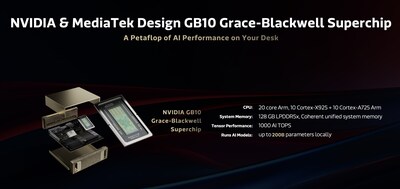 HSINCHU, Oct. 15, 2025 /PRNewswire/ -- MediaTek has teamed with NVIDIA on the design of the GB10 Grace Blackwell Superchip in NVIDIA DGX Spark, a personal AI supercomputer that allows developers to prototype, fine-tune, and inference large AI models on the desktop. Announced earlier this year, DGX Spark will be available to the public starting today to drive the next wave of AI development across industries.