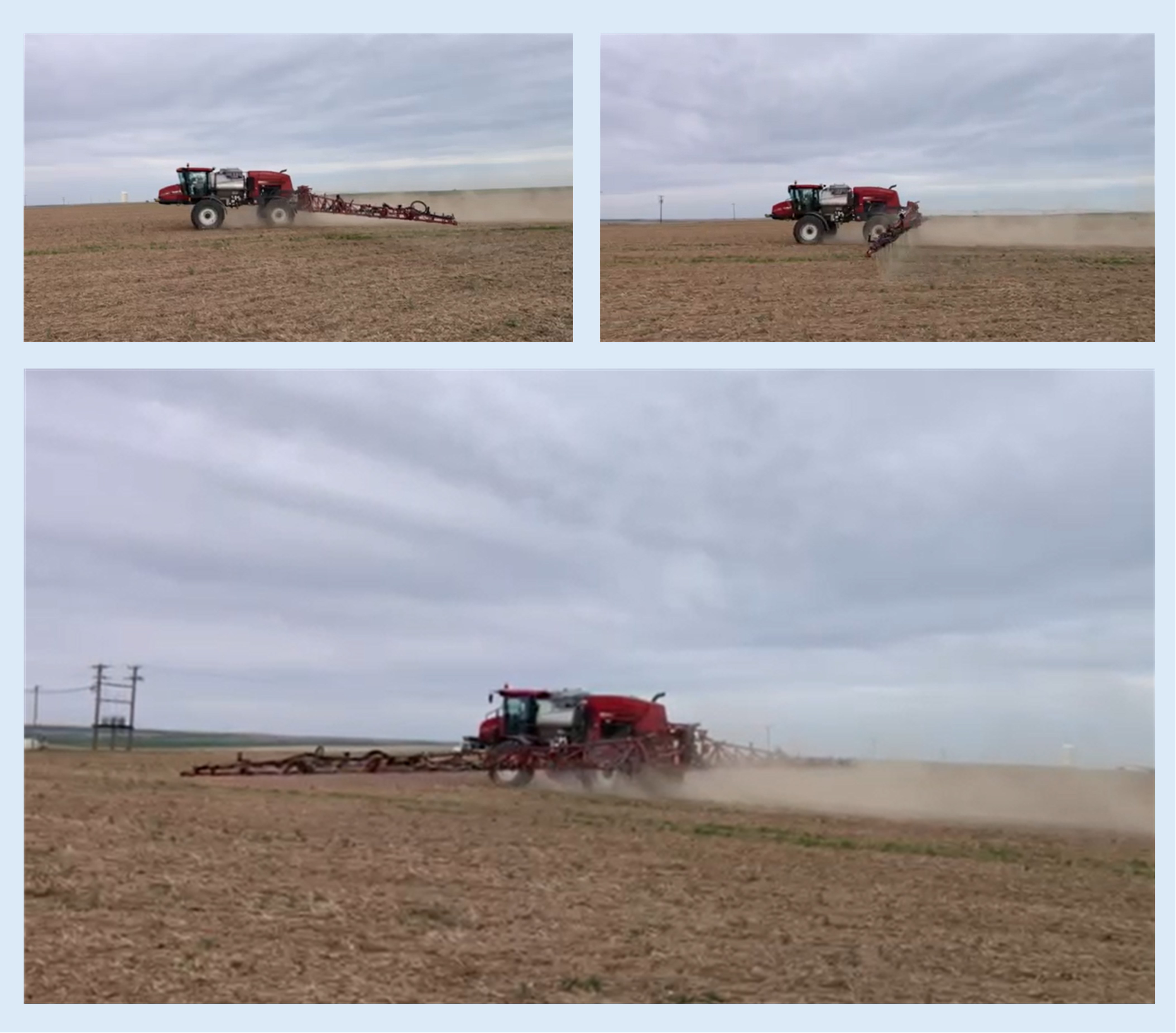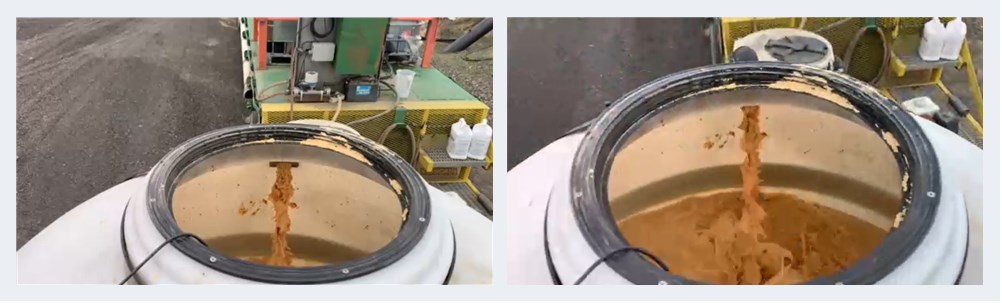 The following figures illustrate TerraSanteTM 'wet-able' powder being mixed into liquid format and applied through typical spray equipment.
