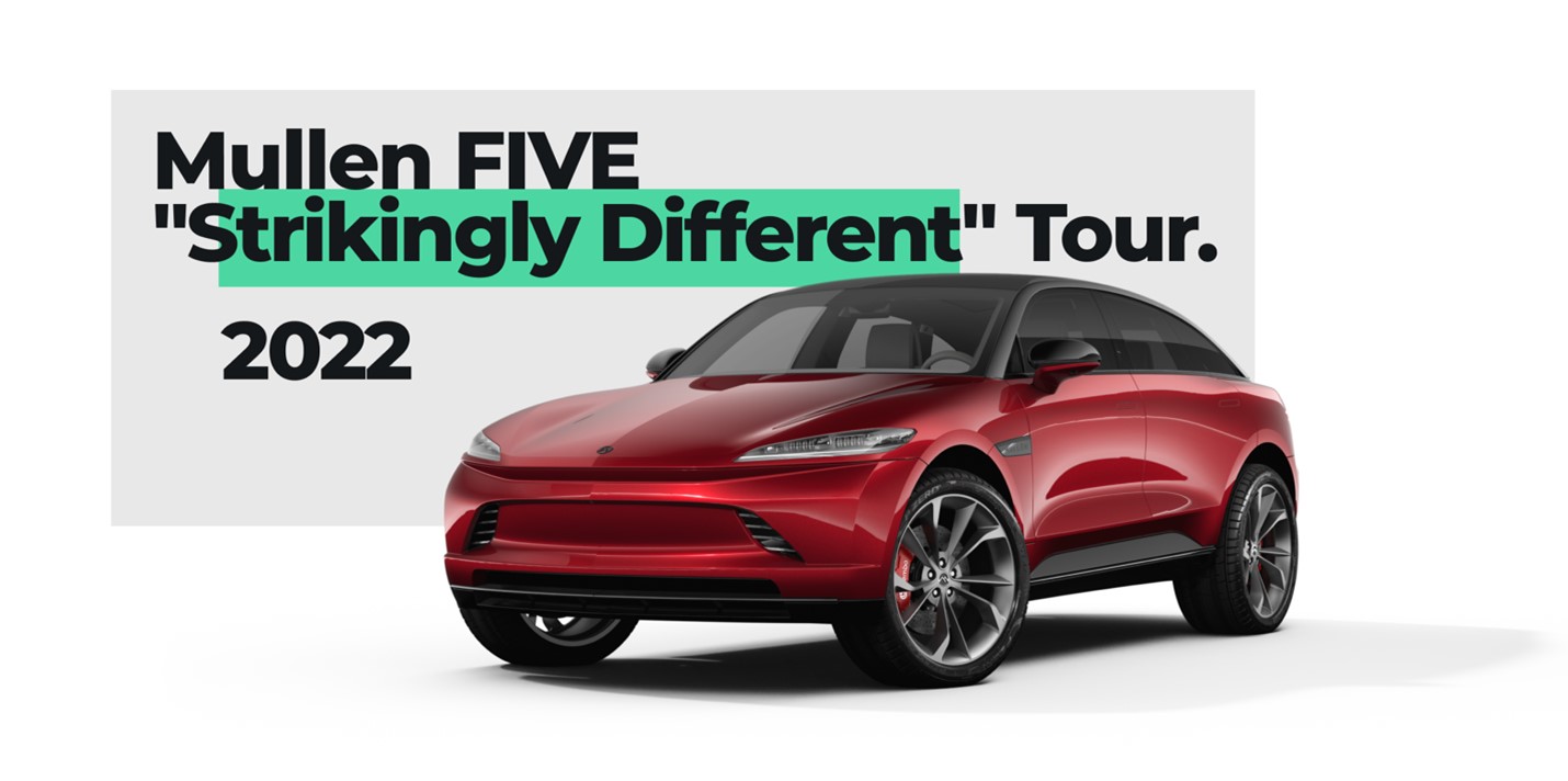 BREA, Calif., Sept. 26, 2022 (GLOBE NEWSWIRE) -- via InvestorWire -- Mullen Automotive, Inc. (NASDAQ: MULN) (“Mullen” or the “Company”), an emerging electric vehicle (“EV”) manufacturer, announces today the kickoff dates of its “Strikingly Different” Tour for the Mullen FIVE EV Crossover.